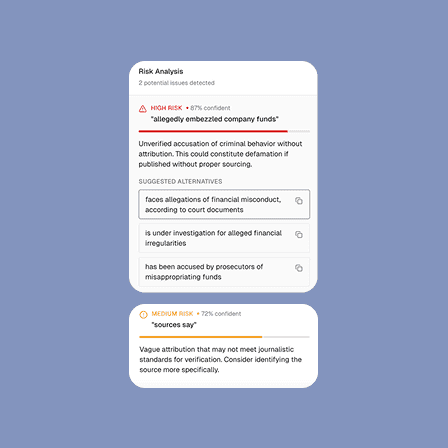 Editors and legal teams knew this. They lived with the risk every day. But they lacked the tools to catch potentially defamatory or harmful language before publication without creating bottlenecks that would grind journalism to a halt.